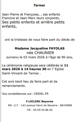 Décédée à Cestas (33610, France) le mardi 3 mars 2026 à l'âge de 90 ans
