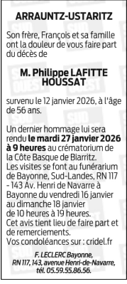 Décédé à Ustaritz (64480, France) le lundi 12 janvier 2026 à l'âge de 56 ans